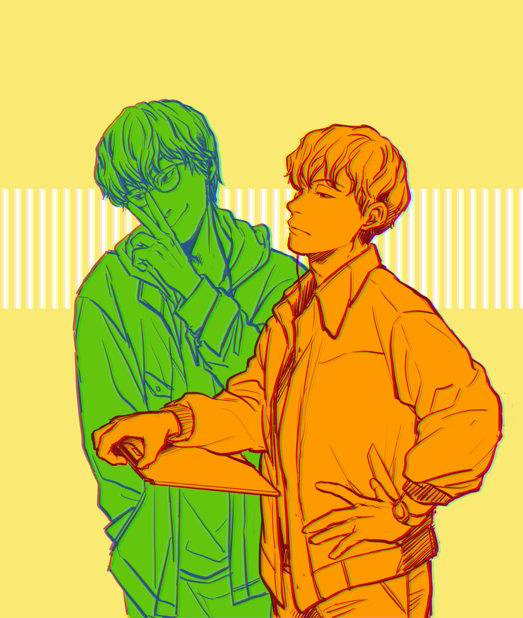 小さいけれど出た作中写真、伊吹が相変わらず白基調のパーカーなのに対し、志摩はちょっとおじさんみが加わってるというか、年齢相応の落ち着きや貫禄を服で表そうと参考にしたのが陣馬さんもしくは往年の刑事ドラマなのでは疑惑。慕わしい。